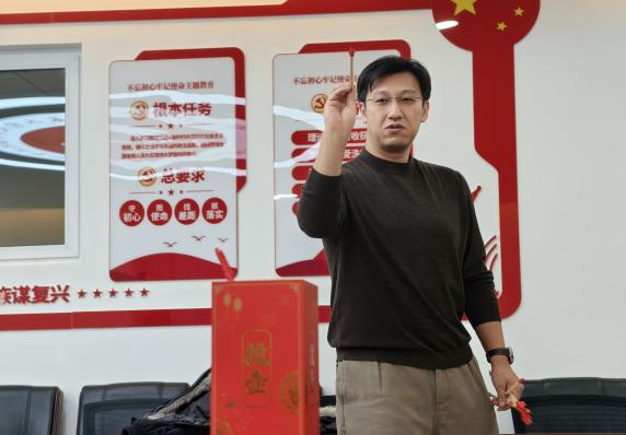 清碗盛露,纤针映光,一场指尖与水的温柔邂逅悄然开启。一分钟的时光里,每一次抬手、每一次投掷,都是耐心与巧劲的完美融合。针尖轻触水面,若能挣脱重力的束缚,将缝衣针摆成三角形,那就是成功。老师们在水与针的低语中,感受传统民俗乞巧的雅致与趣味。