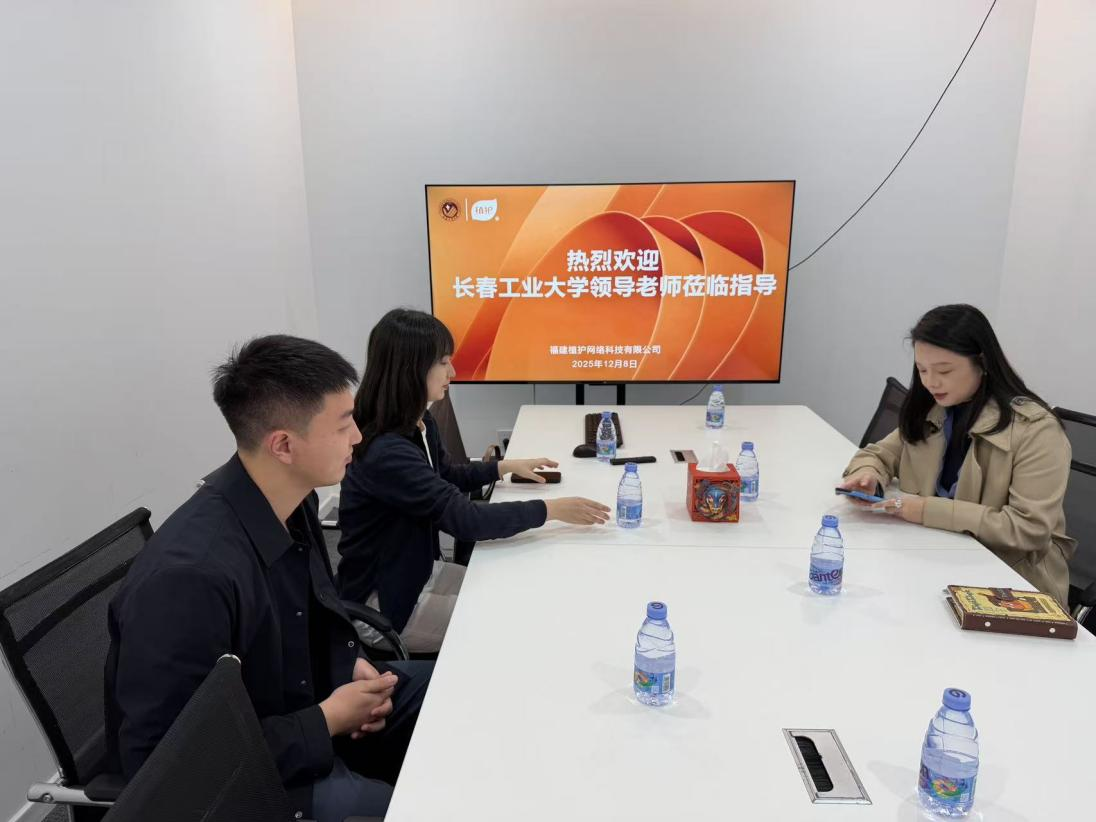 12 月8日上午,走访团首站抵达福州,与福建植护网络科技有限公司相关负责人进行座谈。双方就当前电商行业发展趋势、技术人才需求以及校企合作模式进行了深入交流。企业详细介绍了其在电商运营、大数据分析等方面的业务布局,并表达了对计算机专业毕业生的强烈需求。孟雨萱、谢旺润老师介绍了电子平台