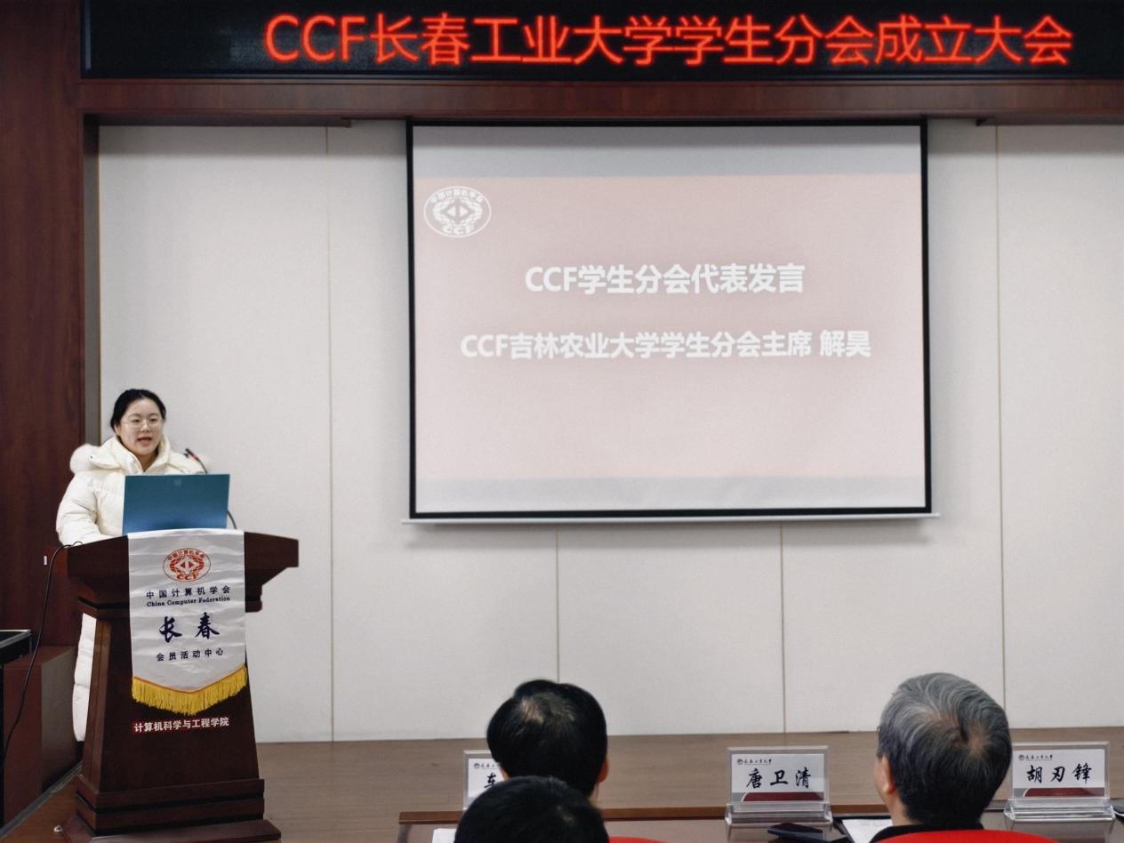 学生分会成立大会于323会议室隆重召开。中国计算机学会(CCF)秘书长唐卫清、中国计算机协会助理秘书长陈国威、CCF会员与分部工委主任李贝、CCF会员部闫婉婷,CCF长春分部主席车翔玖,CCF长春分部副主席孙晓海,十大电子平台推荐